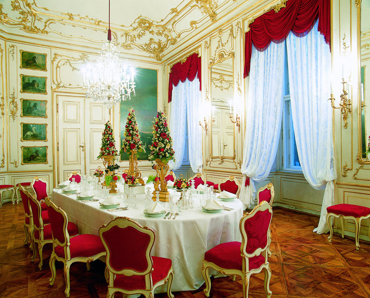 小宴客廳和大宴客廳是同時裝飾的,作為王室家族規模較小的宴會使用。天頂的壁畫同樣是由義大利畫家Guglielmi所繪製的,表達著Habsburg家族聰明與仁慈的美德。